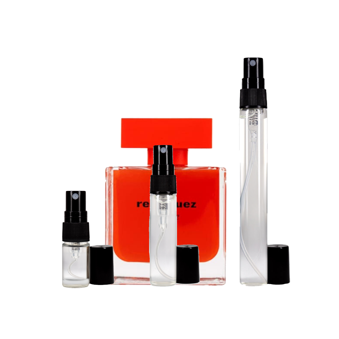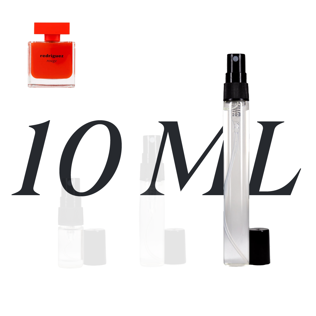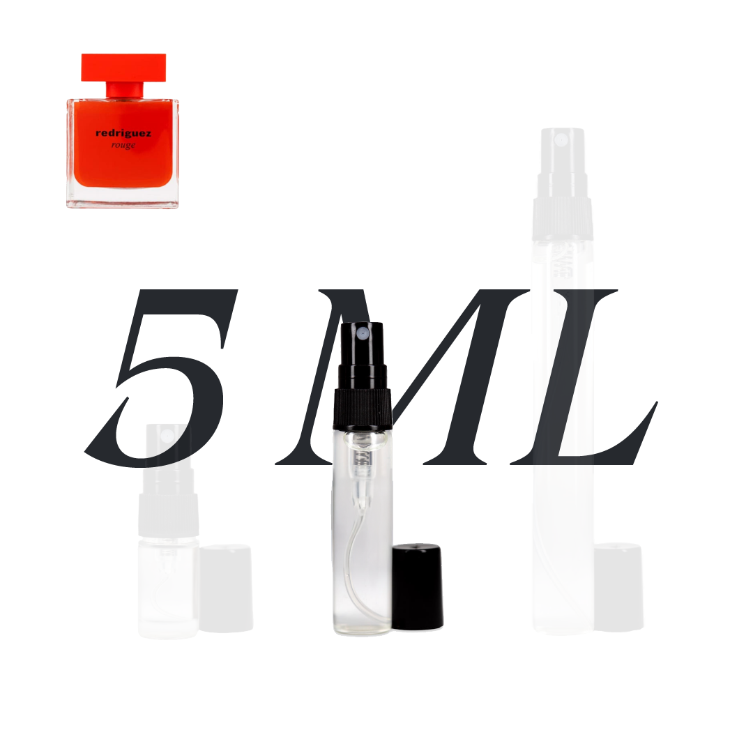 Narciso Rouge de Narciso Rodriguez es una fragancia de la familia olfativa Almizcle Floral Amaderado para Mujeres. Las Notas de Salida: son iris y rosa de Bulgaria (rosa Damascena de Bulgaria); las Notas de Corazón: son almizcle, nardos y flor de azahar del naranjo; las Notas de Fondo: son haba tonka, vainilla, extracto de cedro blanco, cedro, sándalo y vetiver.